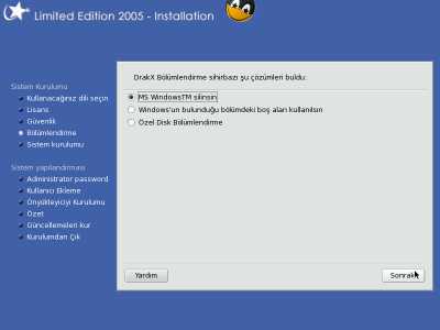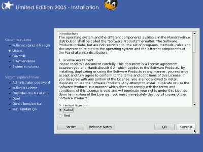 Kurulumda Mandriva LE2005 PowerPack Club sürümü kullanıldı. Ne yazık ki bilgisayarı alırken gelen XP Home için miktarı belirtilmese de para ödemek zorunda kaldım. Paket açılıp da bilgisayar çalıştırılmadan önce yaptığım ilk şey üzerindeki XP çıkartmasını sökmek oldu.