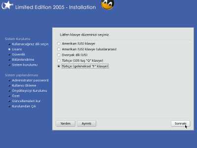 Öncelikle benim gibi F klavye kullananların bu sürümde de Ömer Fadıl Usta tarafından hazırlanmış olan turk scripti çalıştırmak gerekiyor. Nedense bu sürümde F klavyede i harfi gibi bazı harflerin yerlerinde bir sorun var. Bu script kullanıldıktan sonra böyle bir sorun kalmıyor. (Bu işleme Mandriva 2006'da gerek kalmamış.)