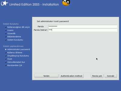 root'un parolasının belirlenmesi gerekir. Bu işlemi kesinlikle atlamayın.