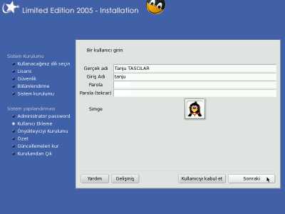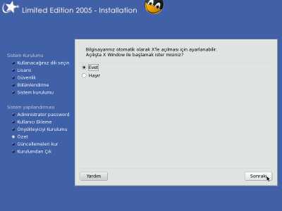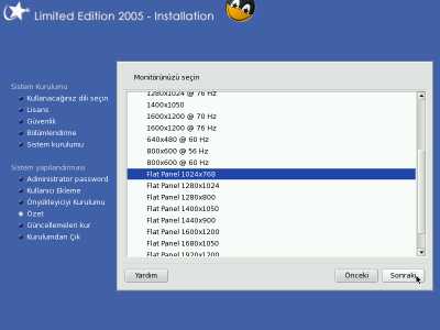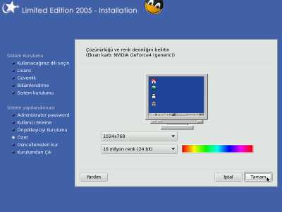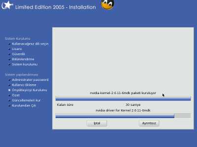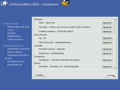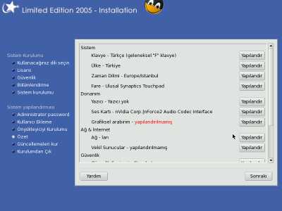 Donanımın tanınması ve gerekli paketlerin yüklenmesinden sonra sistem ile ilgili