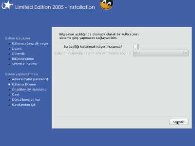 Normal olarak açılışta kullanıcı girişi için bir seçim ekranı çıkar. Ancak bu