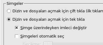 Simgelere tek tıklama ile çalışması için Sistem > Yapılandırma > Konfigure Your Desktop yolu ile açılan KDE kontrol merkezinde küçük bir ayar yeterli olur.