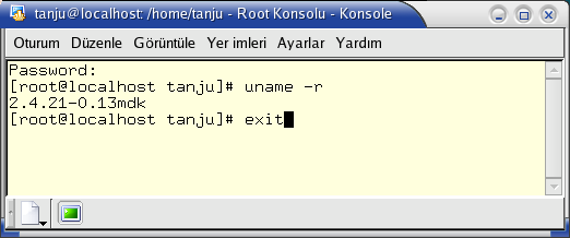 | Grafik Ortamda 'root' | Mandrake 9.1 ve 'root' | 'root' haklarıyla program çalıştırmak. |