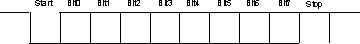 0 olan start biti ile başlar. 8 adet data bitinden sonra 1 olan stop biti gelir.