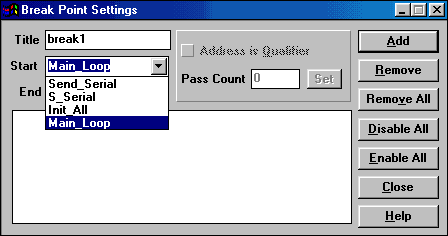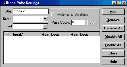 Bu butona tıkladığımızda 'Break Point Settings' penceresi açılır. Burada Start